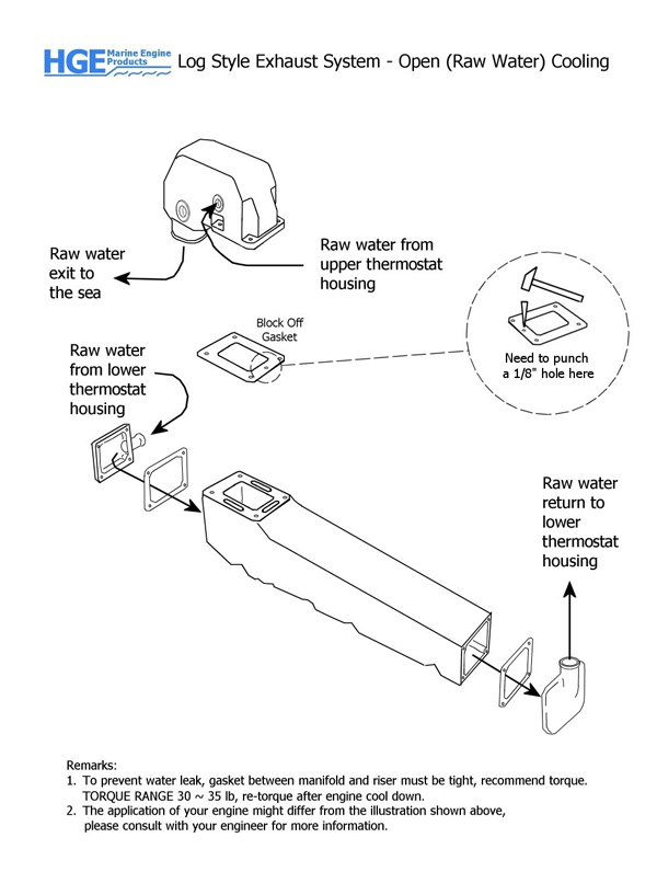 3" exhaust outlet, 90° down angle Mercruiser Log Riser (stern-drive). |