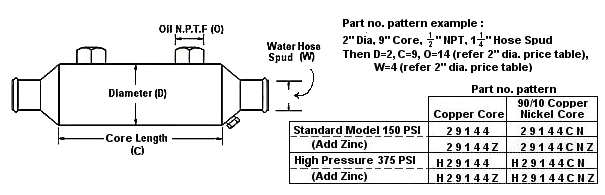 ** For the oil coolers with zinc, the core length (C) is 1" longer.